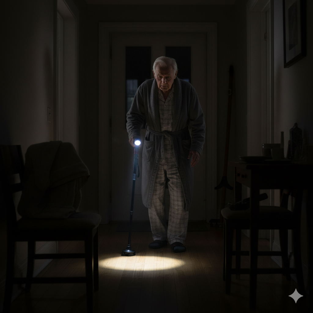 Designed for everyday convenience — whether at home, out in the neighborhood, or on the go — the SureStep Cane combines ergonomic comfort with practical features like easy height adjustment, a built-in light, and a second handle.